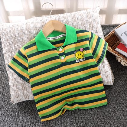 2024 Children’s Shirt Boy’s Solid Color Shirt Summer Short-sleeved Baby’s Half-sleeved Lapel Striped Shirt Trendy