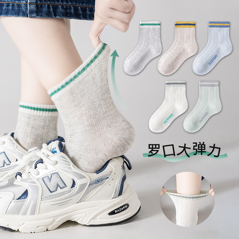 | nameOriginal | 2024 children's socks spring and summer thin sports cotton socks mesh breathable boys and girls students socks letters tide socks wholesale |