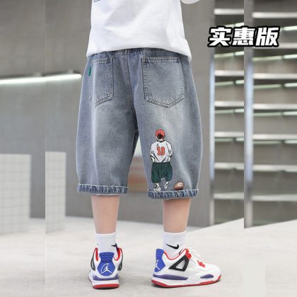 2024 Children's Summer New Baby Capri Pants Children's Boys Jeans Summer Trendy Handsome Trendy