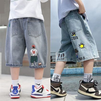 2024 Children’s Summer New Baby Capri Pants Children’s Boys Jeans Summer Trendy Handsome Trendy