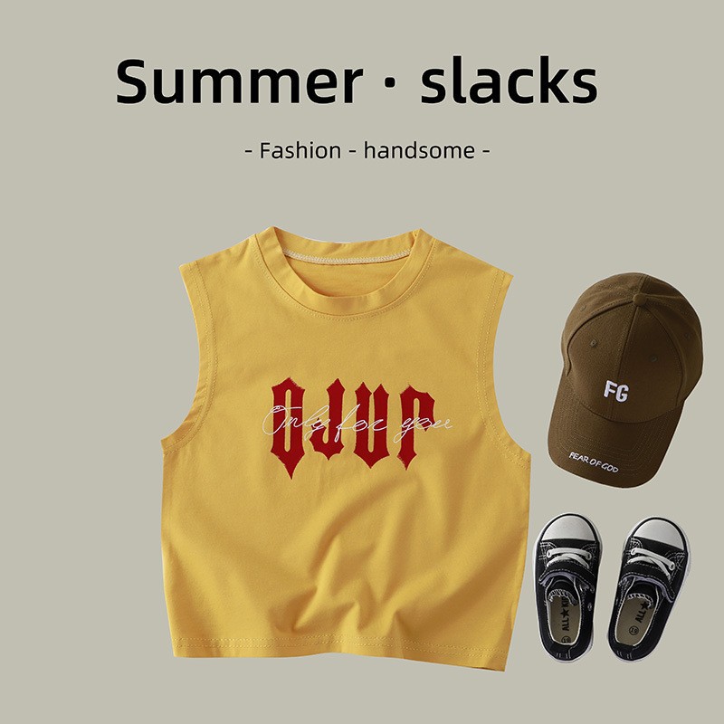| nameOriginal | 2024 children's summer sleeveless vest candy color simple outer wear round neck T-shirt men's and women's treasure Western style fashion vest |