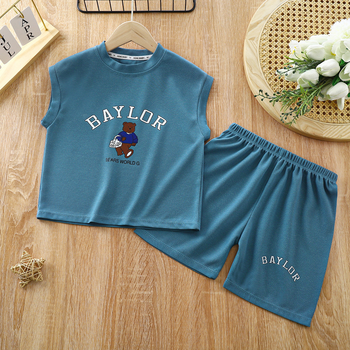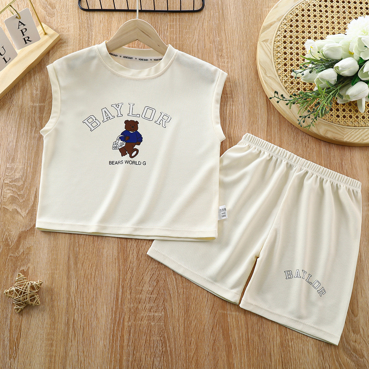 2024 children’s vest set new waffle jacket sleeveless shorts baby summer children’s clothing a generation of hair