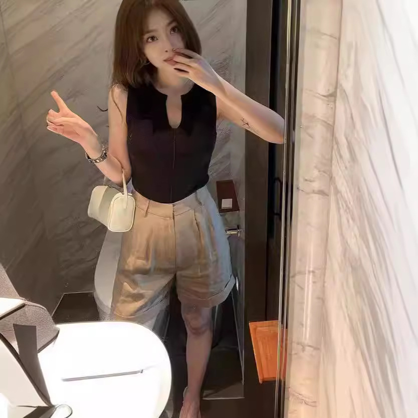 | nameOriginal | 2024 Classic Atmospheric Breathable Linen Flanging Casual High Waist Quality Shorts Women's Slimming |