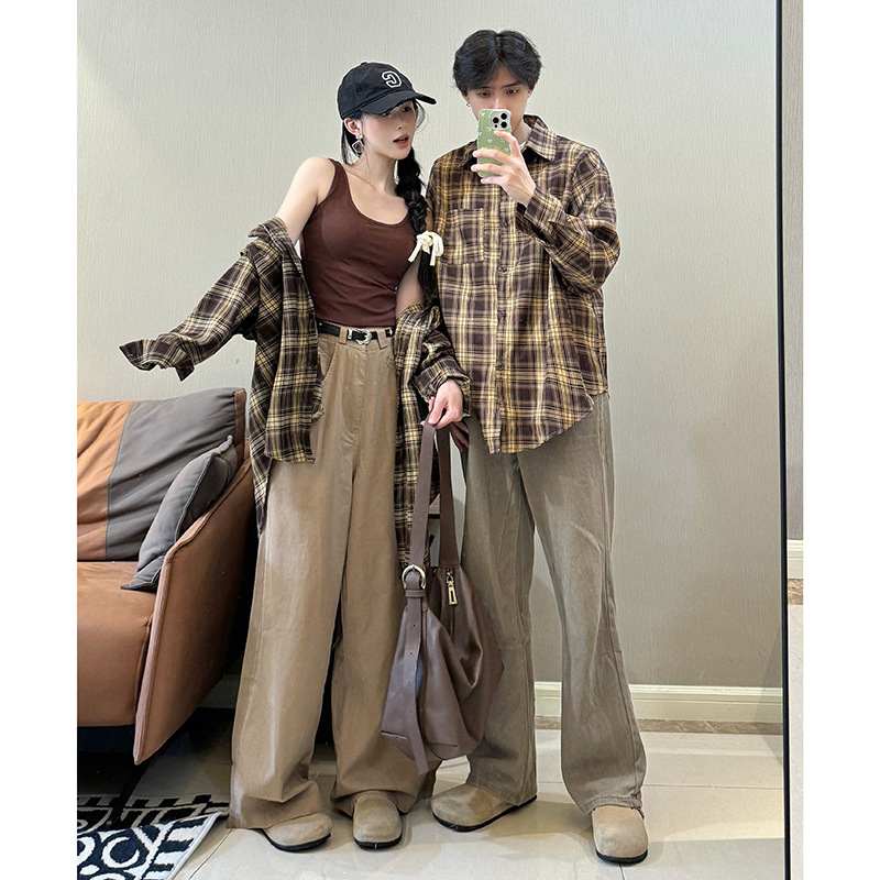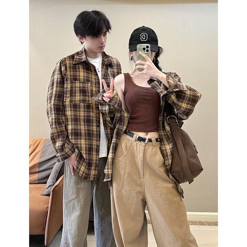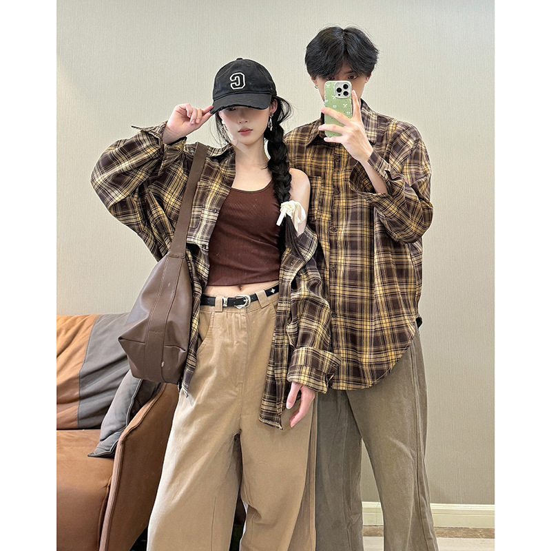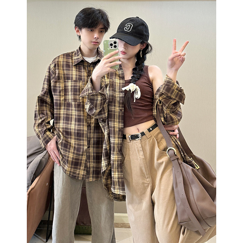 | nameOriginal | 2024 Couple Clothing Summer Vintage Plaid Men's and Women's Long-sleeved Shirt Design Sense Lazy Style Loose Anti-sunscreen |