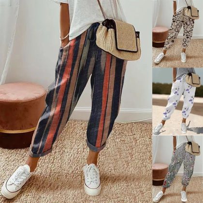 | nameOriginal | 2024 Cross-border Amazon ebay Independent Station wish European and American Women's Printed Cotton and Linen Craft Pocket Casual Pants |