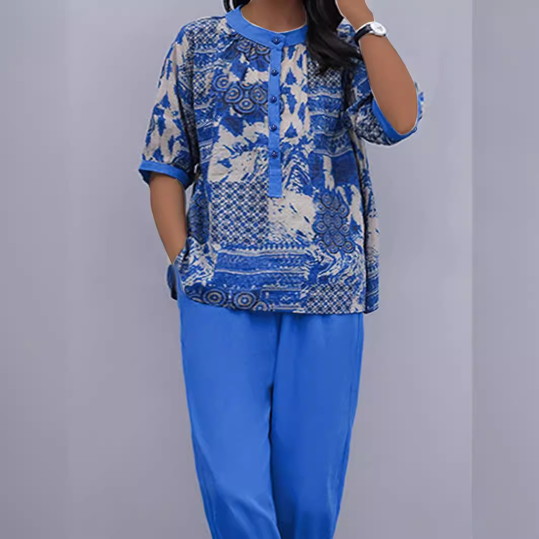 | nameOriginal | 2024 cross-border Amazon foreign trade plus size women's European and American style fashion printed short sleeve jacket casual pants suit |
