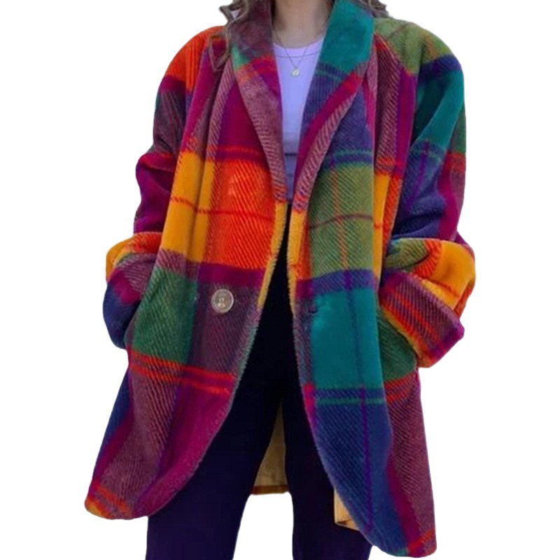 | nameOriginal | 2024 cross-border European and American autumn women's long sleeve lapel color matching coat printed woolen cloth long coat |