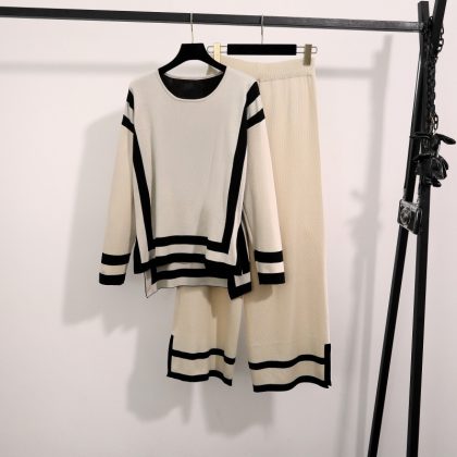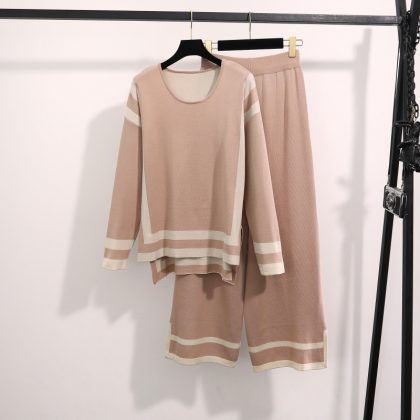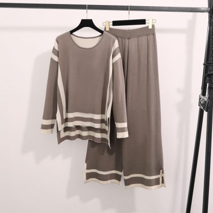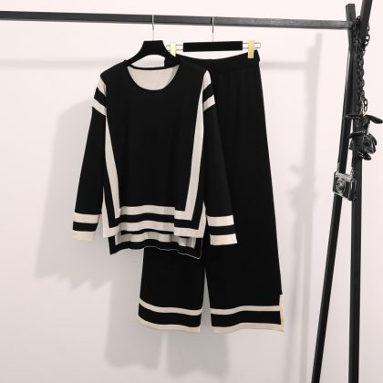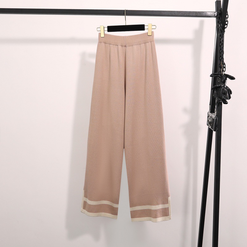 | nameOriginal | 2024 cross-border foreign trade fashion simple stitching loose long-sleeved top high waist slimming wide-leg pants knitted two-piece suit |
