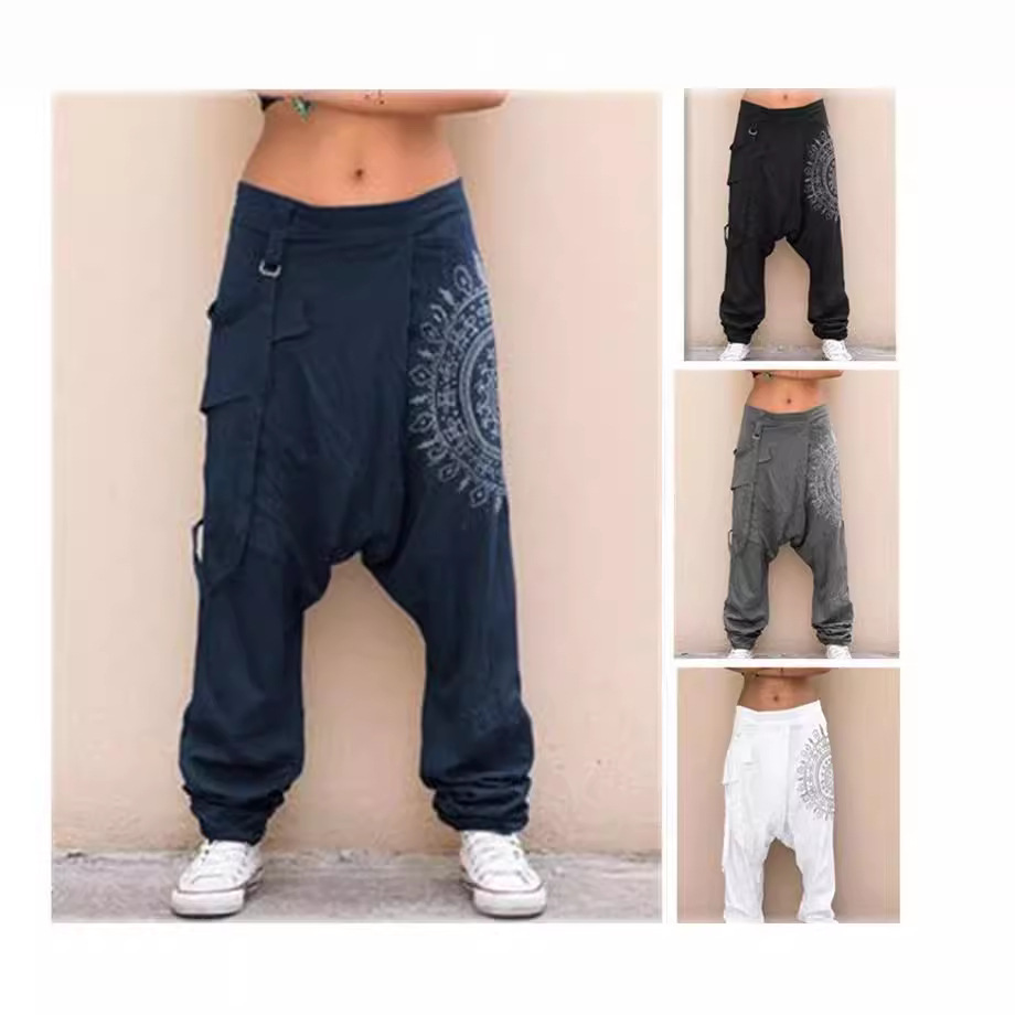 2024 cross-border foreign trade popular European and American women's printed casual crotch harem pants