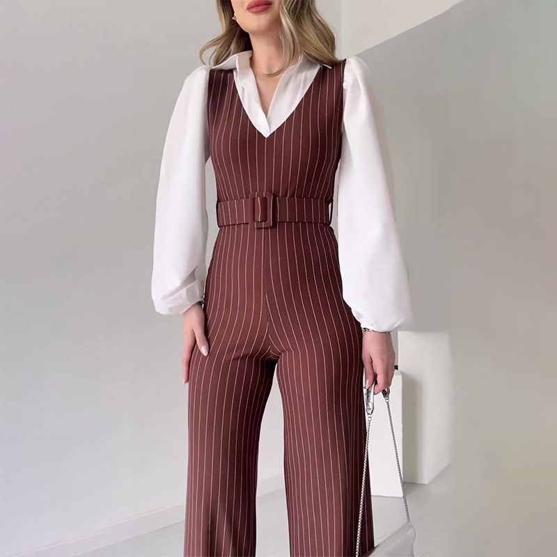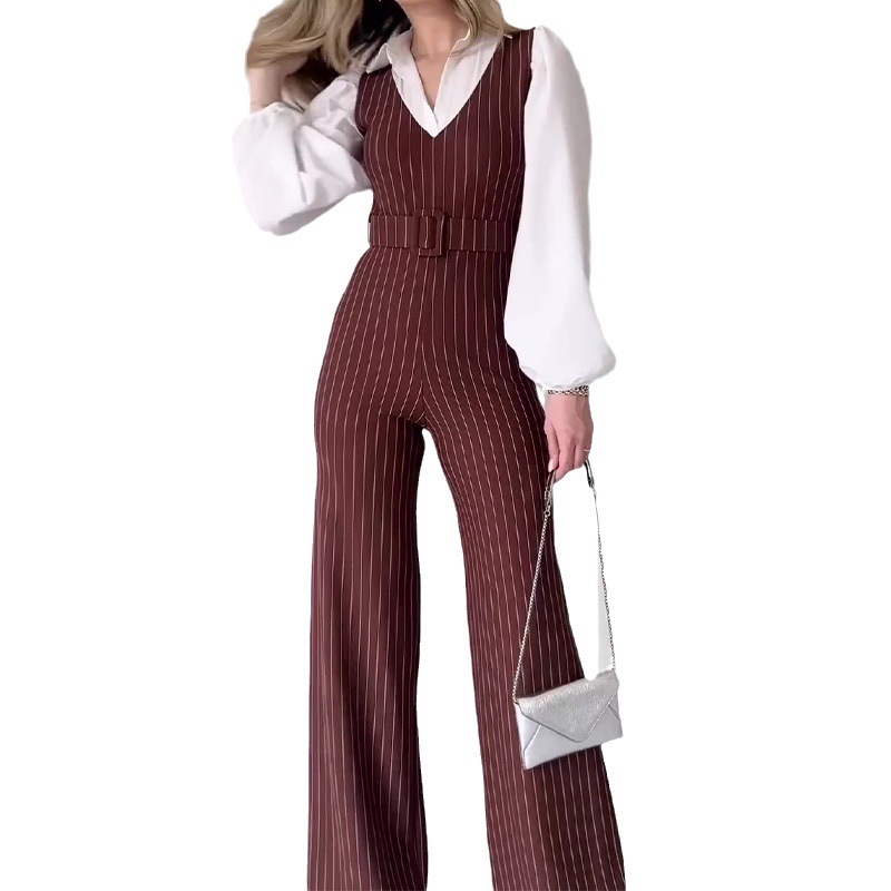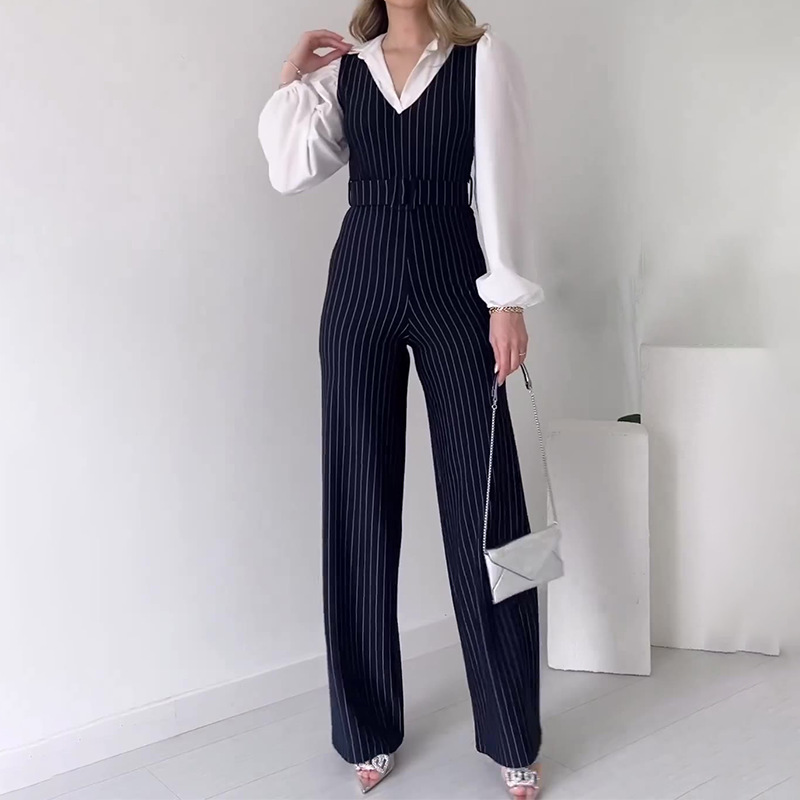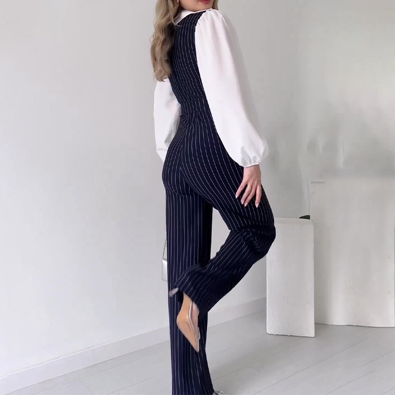 2024 Cross-border Foreign Trade Women’s Clothing Amazon Autumn Contrast Stitching Fashion High Waist Striped Straight Leg Pants Women