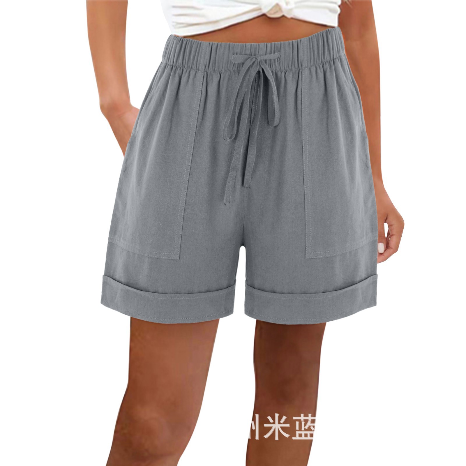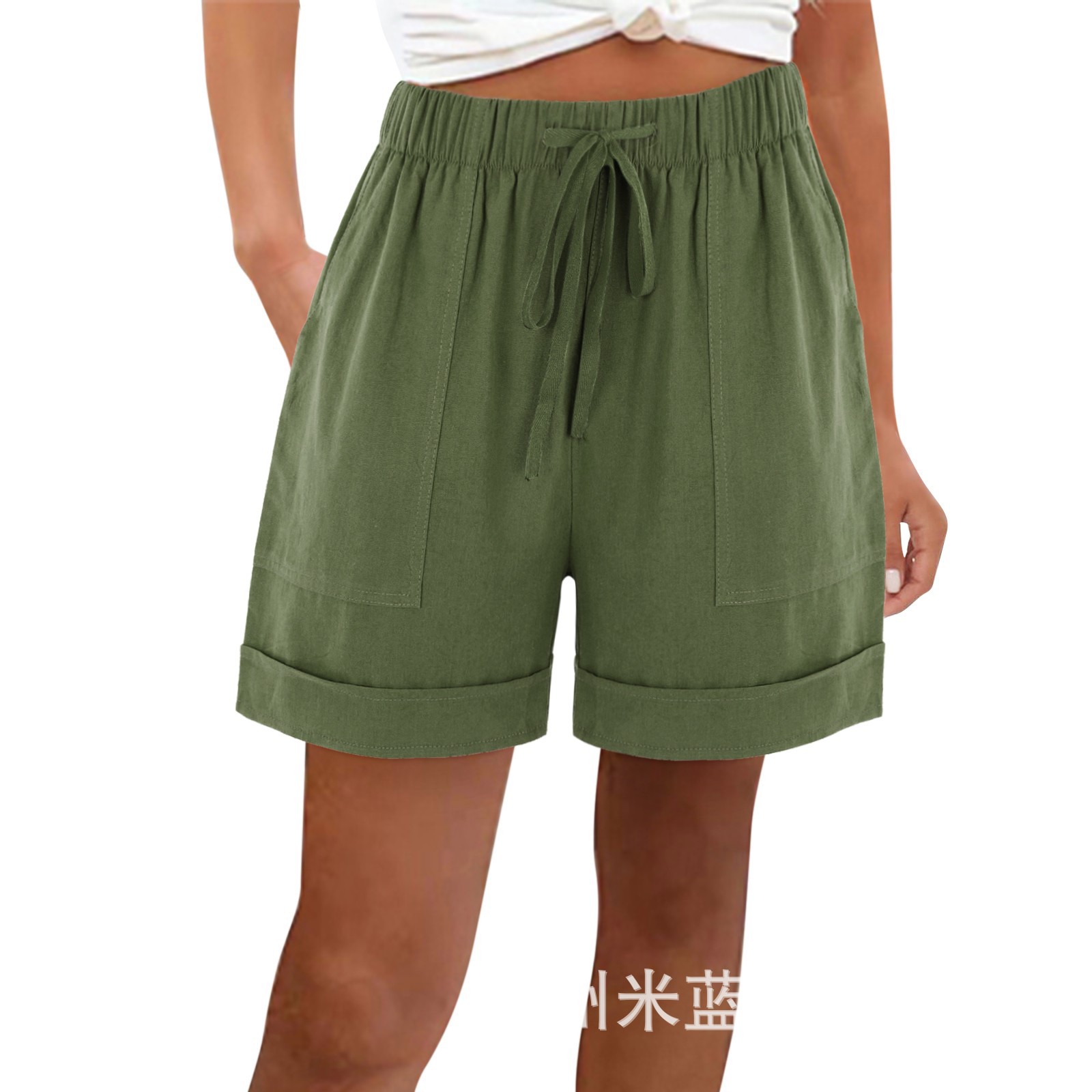 | nameOriginal | 2024 Cross Border Hot Sale Women Summer Casual Solid Color Pocket Drawstring Ruffled Shorts |