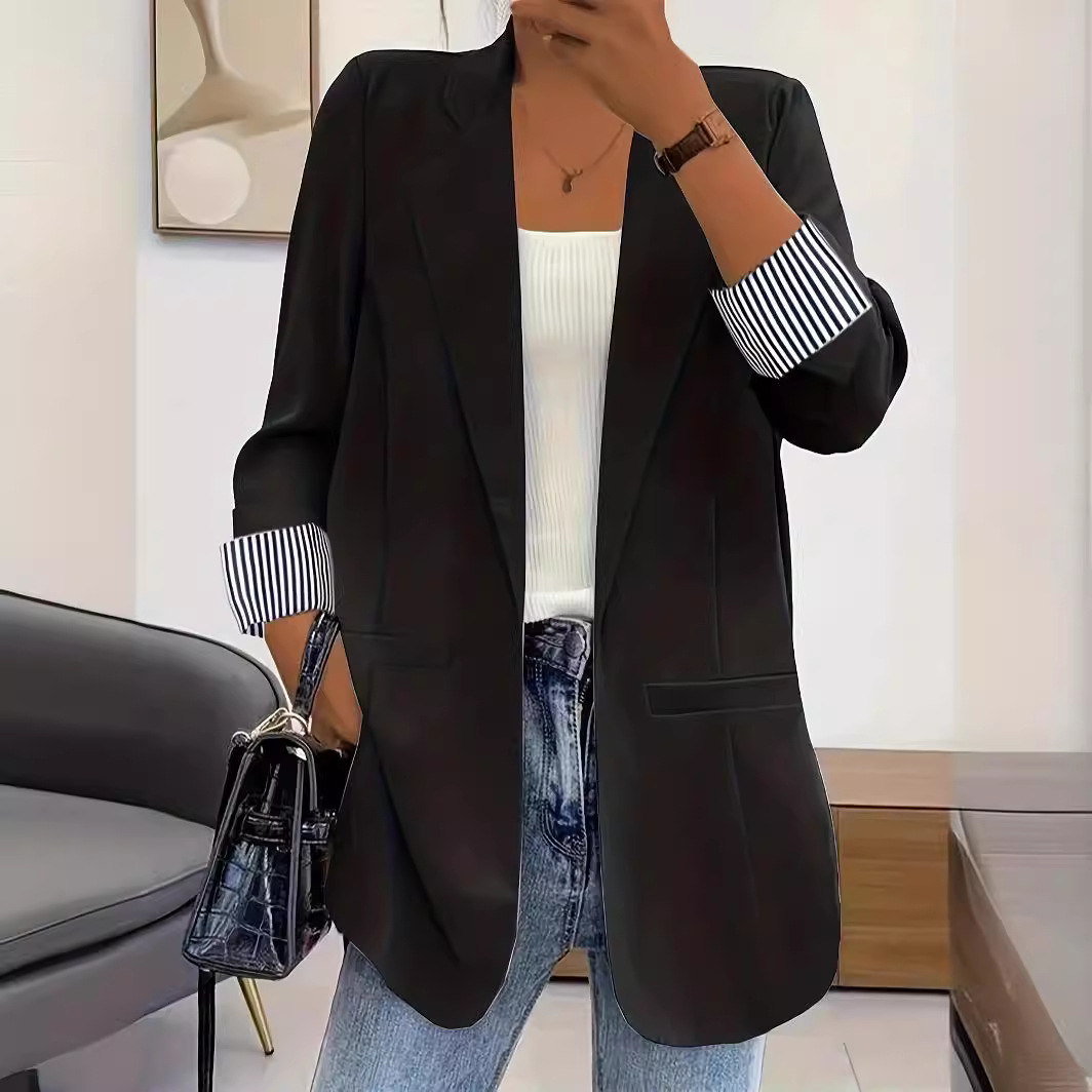 2024 cross-border independent station Amazon European and American autumn and winter fashion stitching slim cardigan temperament suit jacket for women