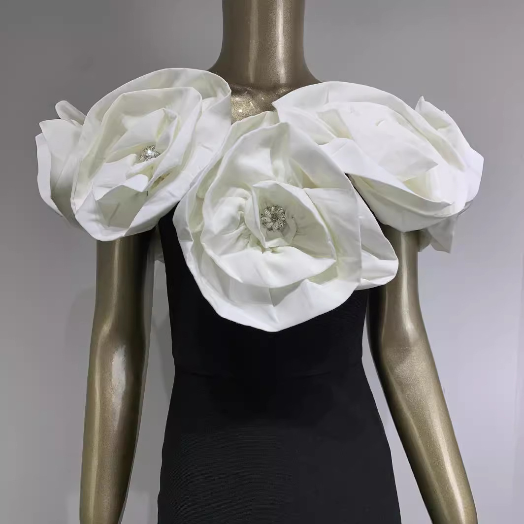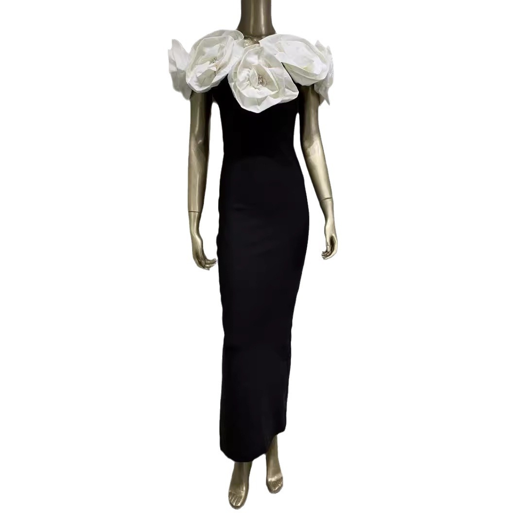 2024 Cross-border New Foreign Trade Amazon Independent Station Explosions Bandage Dress White Large Flower Long Dress