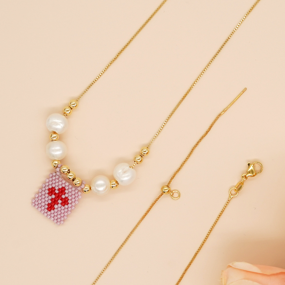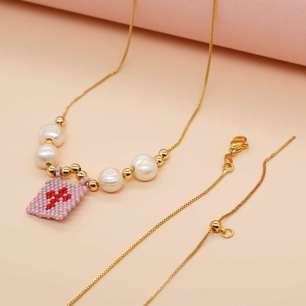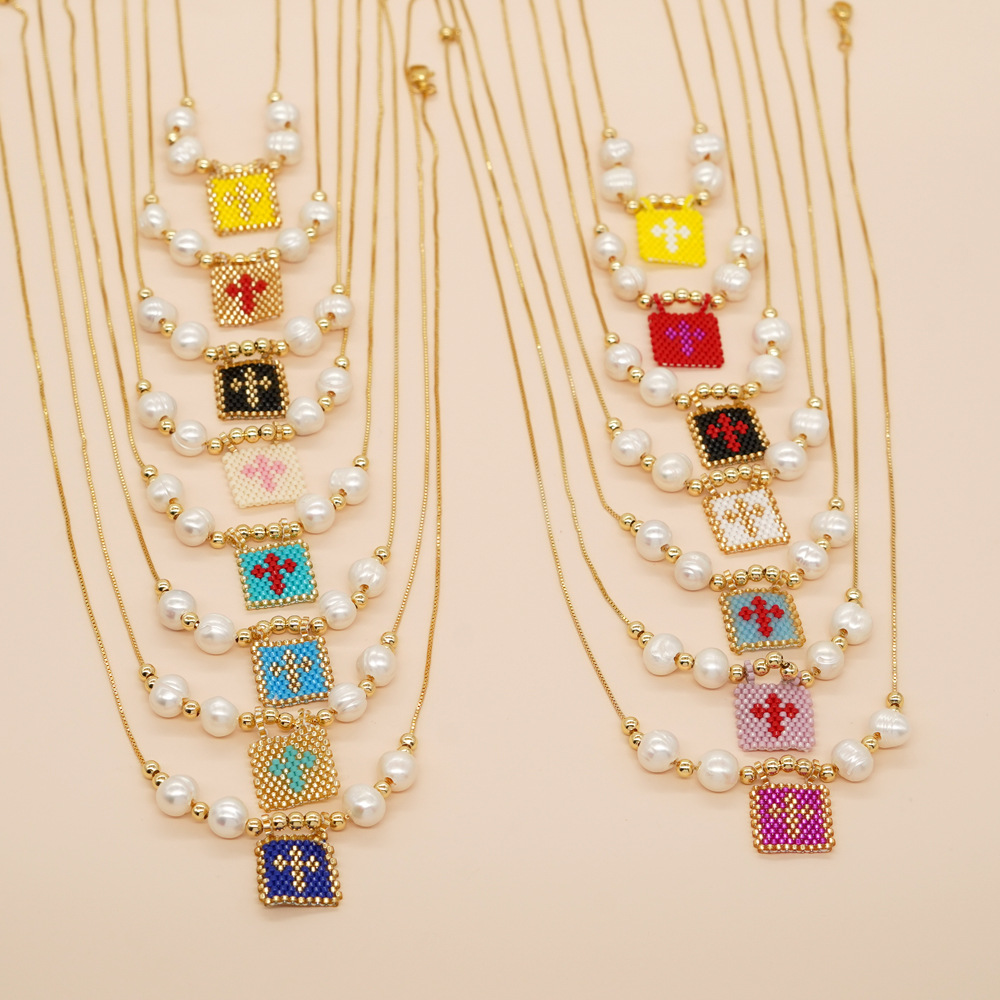 | nameOriginal | 2024 cross-border new niche fashion rice beads woven cross tag pearl beaded women's necklace |