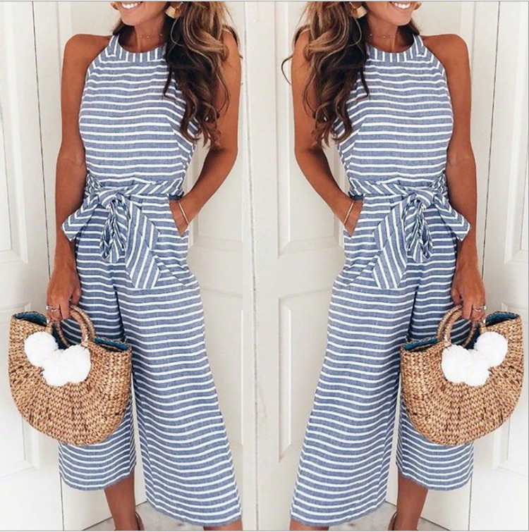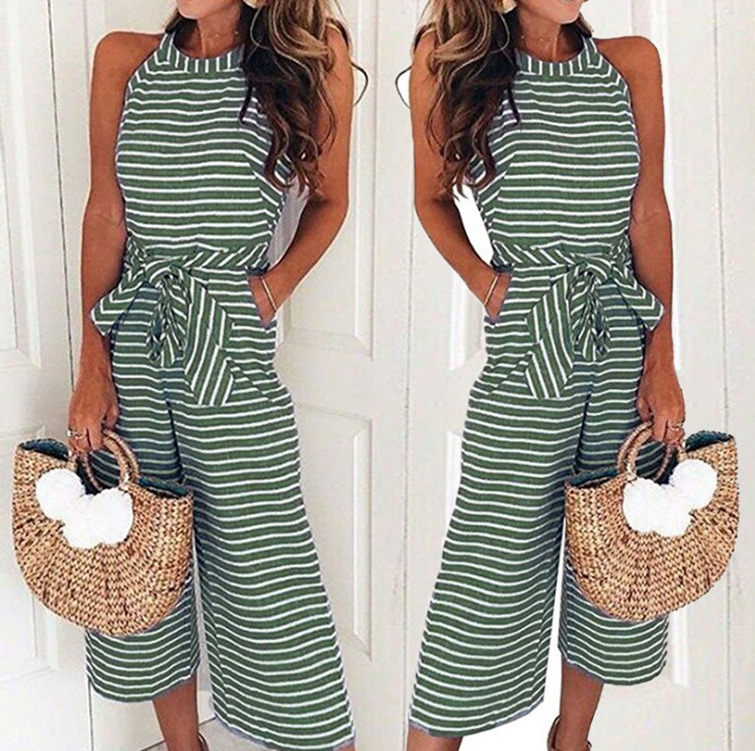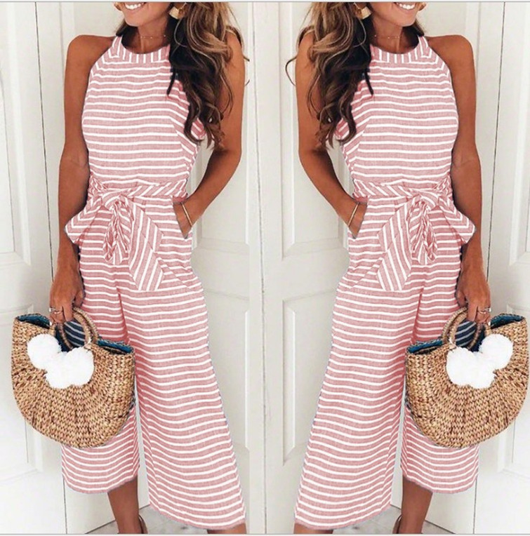 2024 Cross-border Supply Hot 5-color Fashion Slim-fit Lace-up Sexy Striped Crewneck Pants