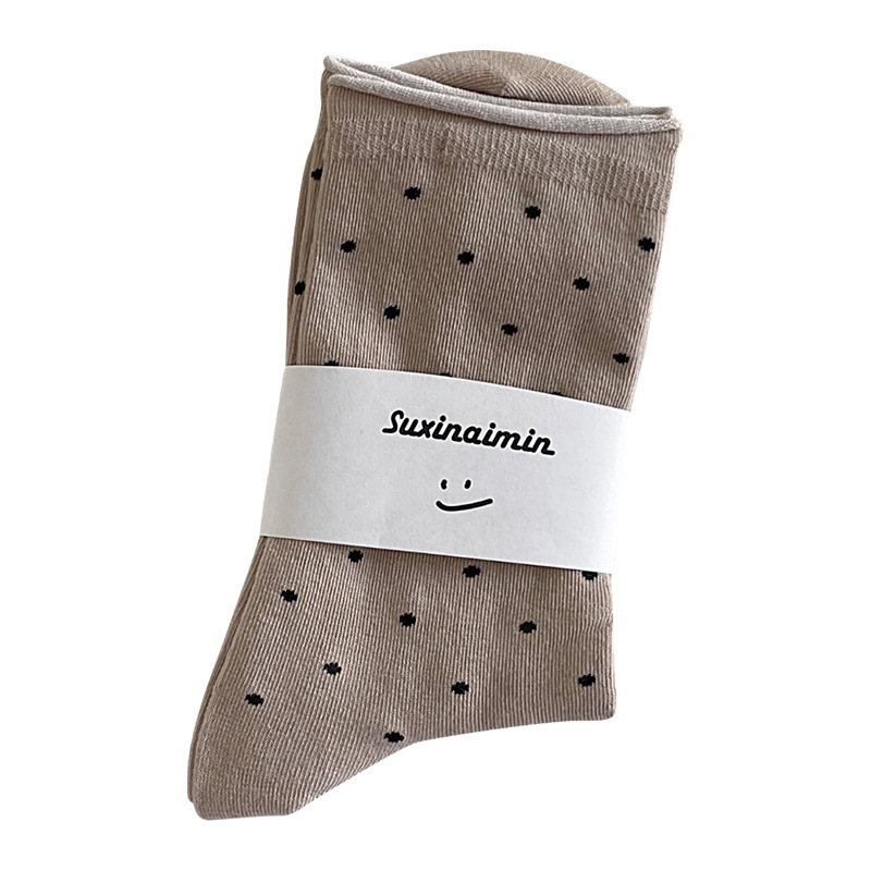 2024 cute socks for women spring and summer sweat-absorbent ins trendy cream series curling dots mid-calf socks artistic confinement socks