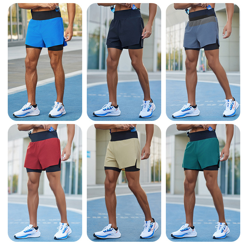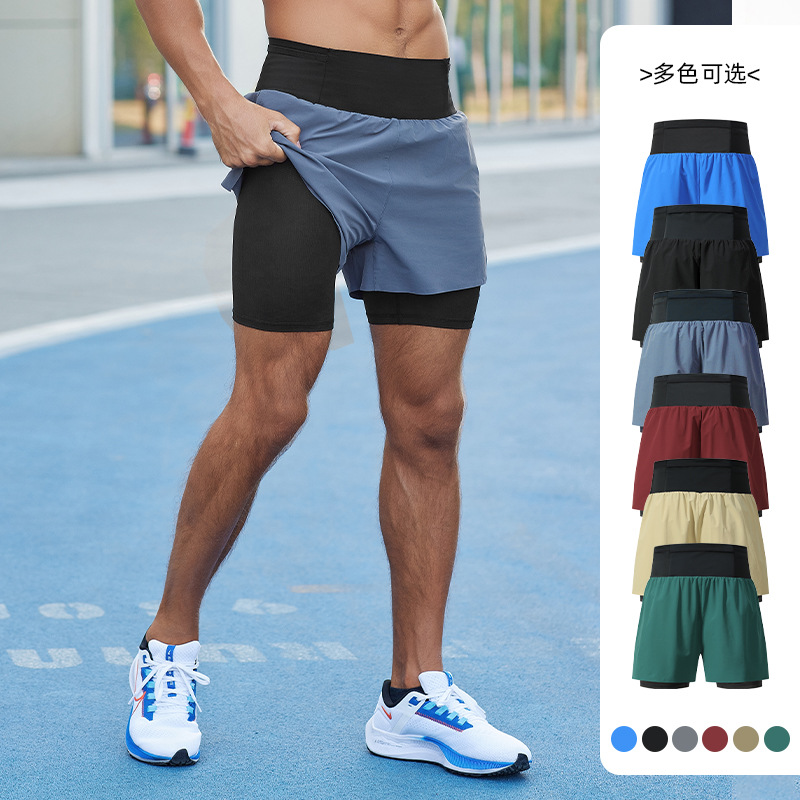 2024 Double-layer Quick-drying Shorts Men's Track and Field Running Anti-walking Shorts Tight-fit Lined Running Shorts Summer