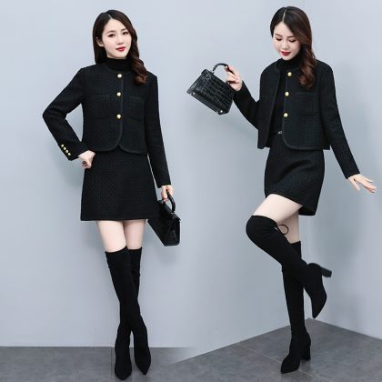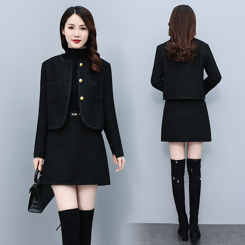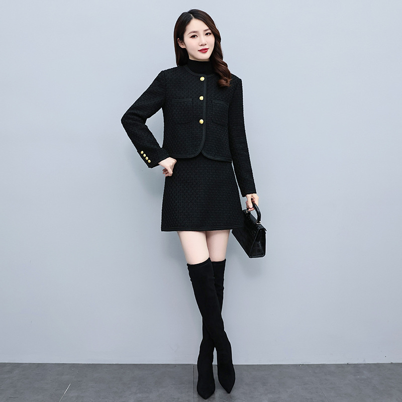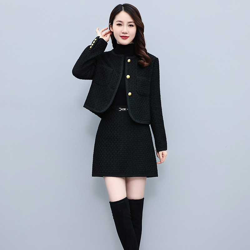 2024 early autumn Chanel style suit new elegant age-reducing short coat slim slimming small black skirt two-piece skirt