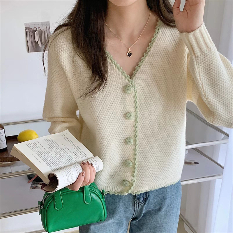 | nameOriginal | 2024 Early Autumn New Korean Style Contrast Color V-neck Sweater Women's Loose Fashion Gentle Style Age-reducing All-match Knitted Cardigan |