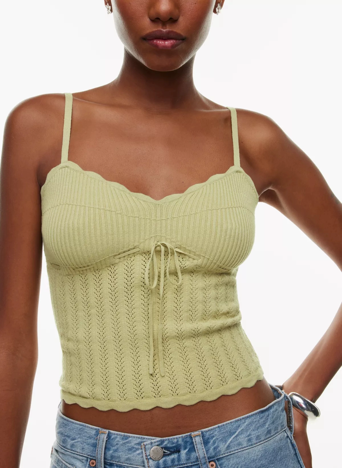 | nameOriginal | 2024 early spring and summer Wilfred shell edge bow engraved 60 count ultra-fine soft knitted camisole for women |