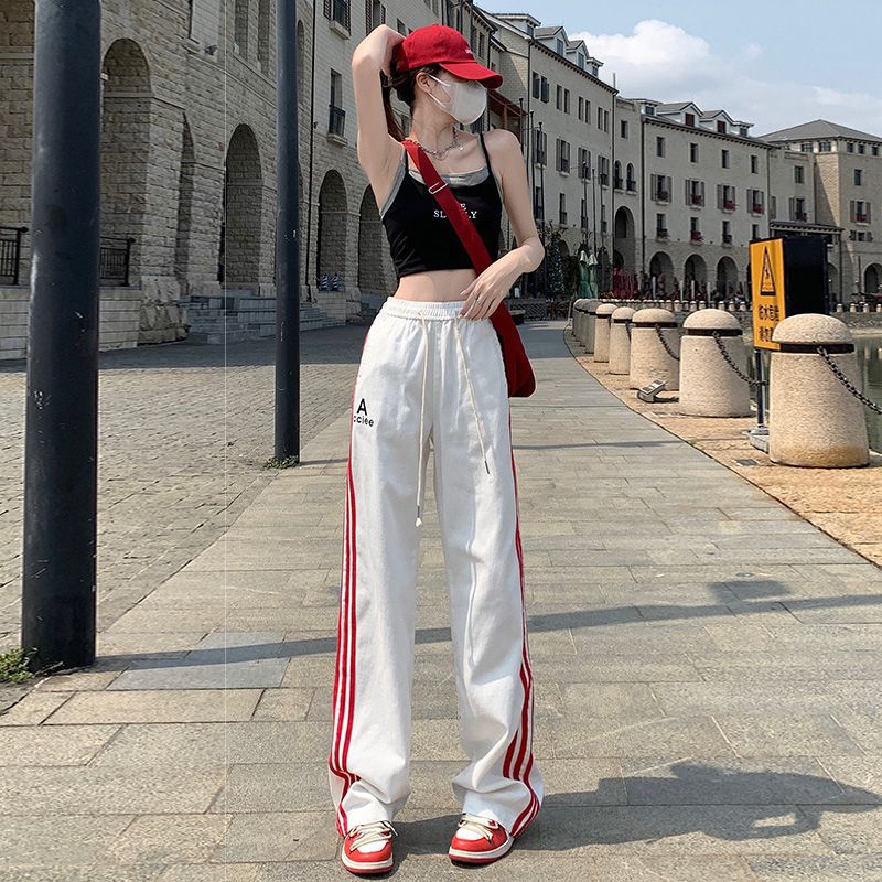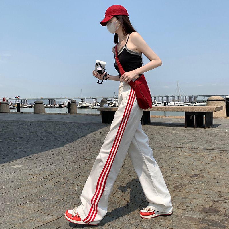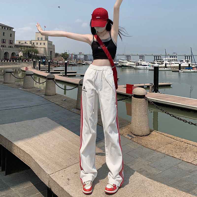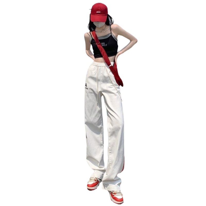 2024 Early Spring New American Casual Pants Women's High Waist Three-Rod Loose Wide-Leg American Fashionable Straight Overalls