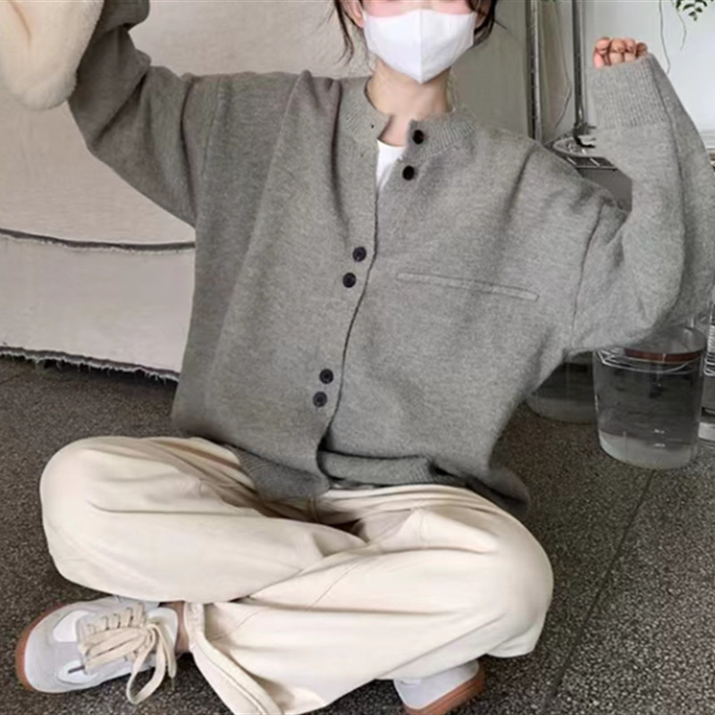 | nameOriginal | 2024 Early Spring New Arrival Grey Knitted Cardigan Women's Loose College Style Casual Lazy Little Man Sweater Coat |