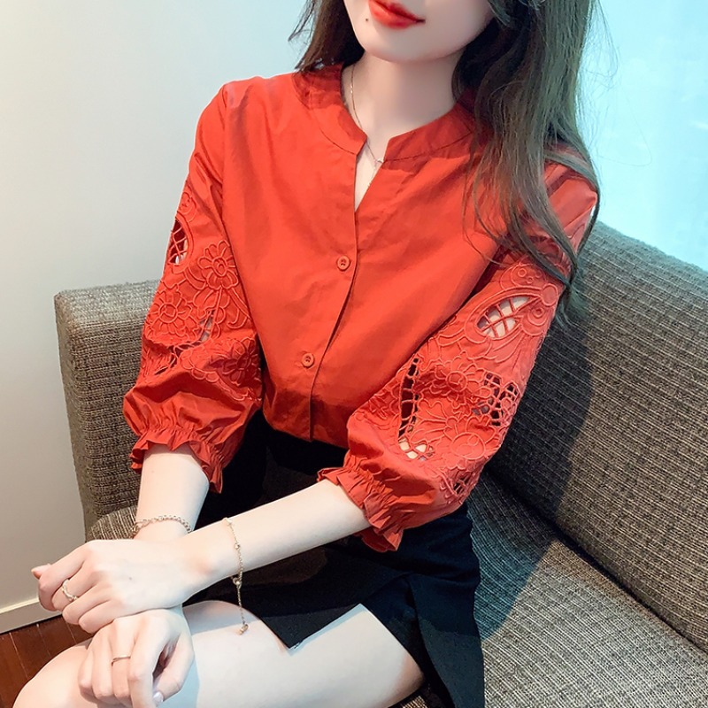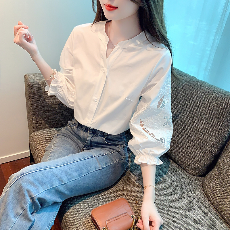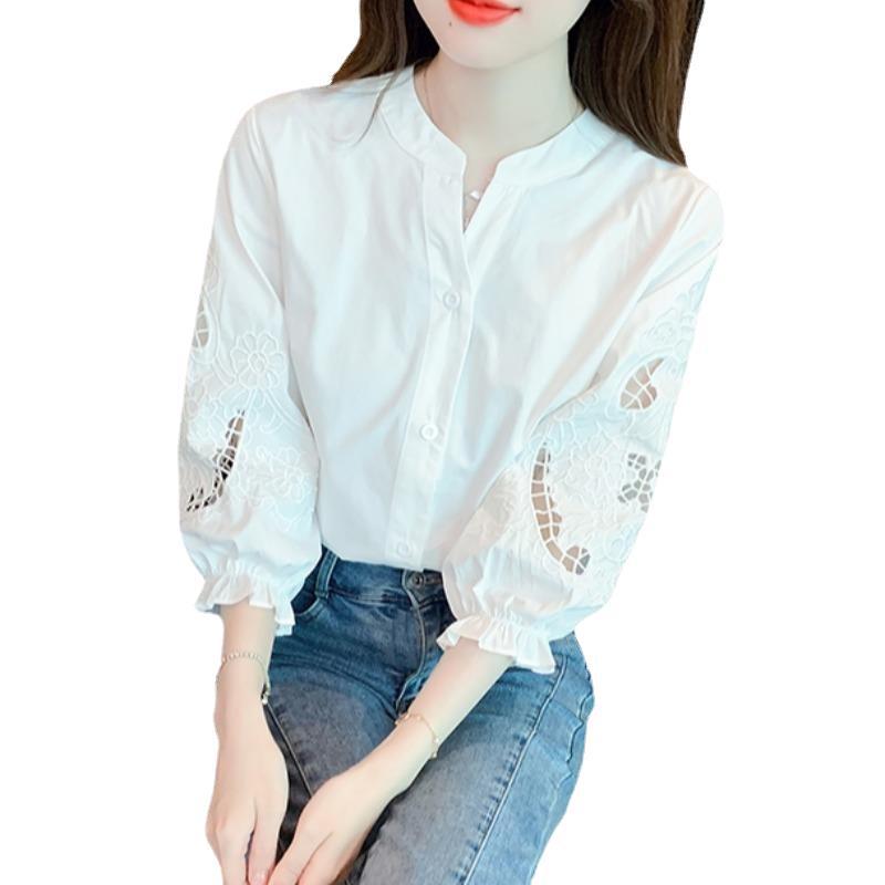 | nameOriginal | 2024 embroidered bubble lantern short-sleeved shirt women's early spring 2024 summer shirt 3/4 sleeve white chiffon top |