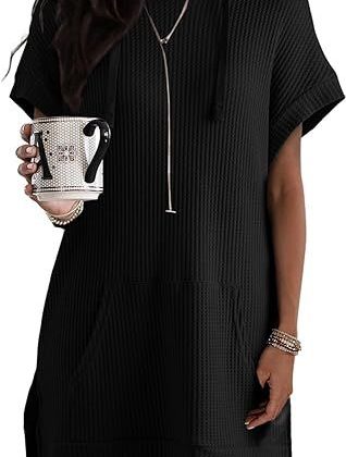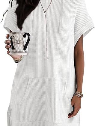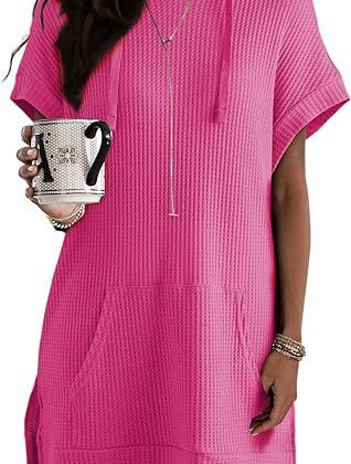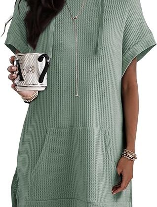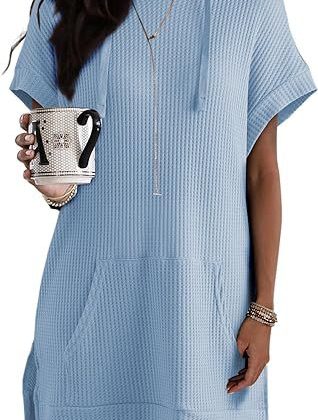 2024 Europe and America Amazon Cross-border Summer Drawstring Hoodie Waffe Knitted Side Split Belt Pocket T