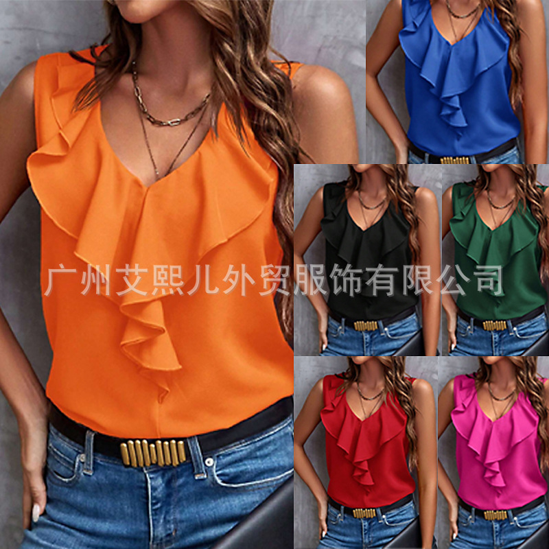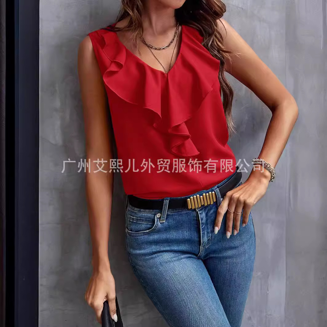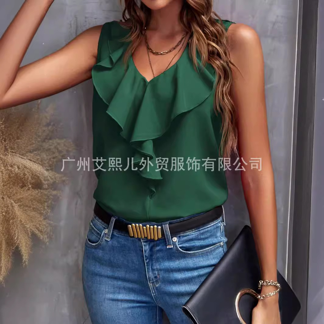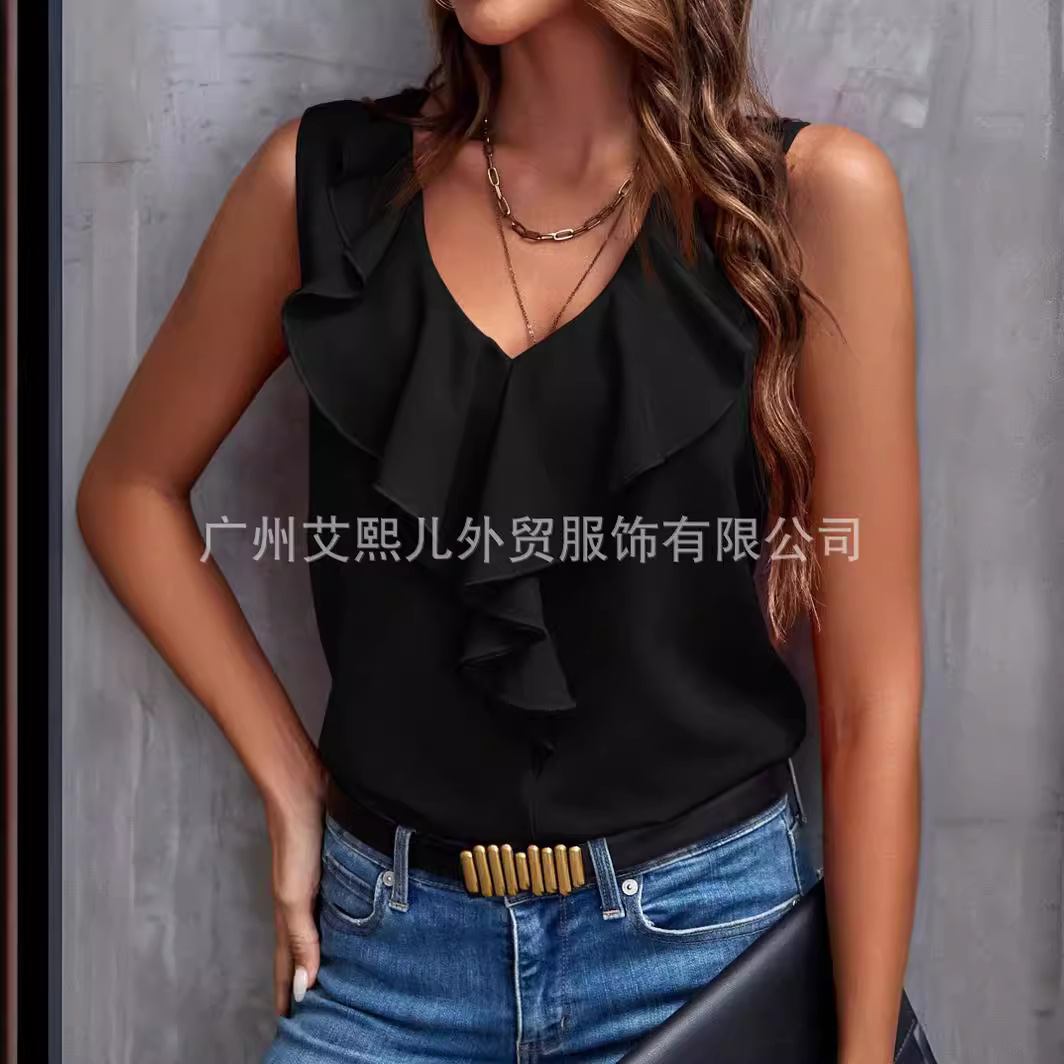 | nameOriginal | 2024 Europe and America Amazon Cross-border Summer Fashion All-match New Solid Color Lace V-neck Sleeveless T Women's Top |