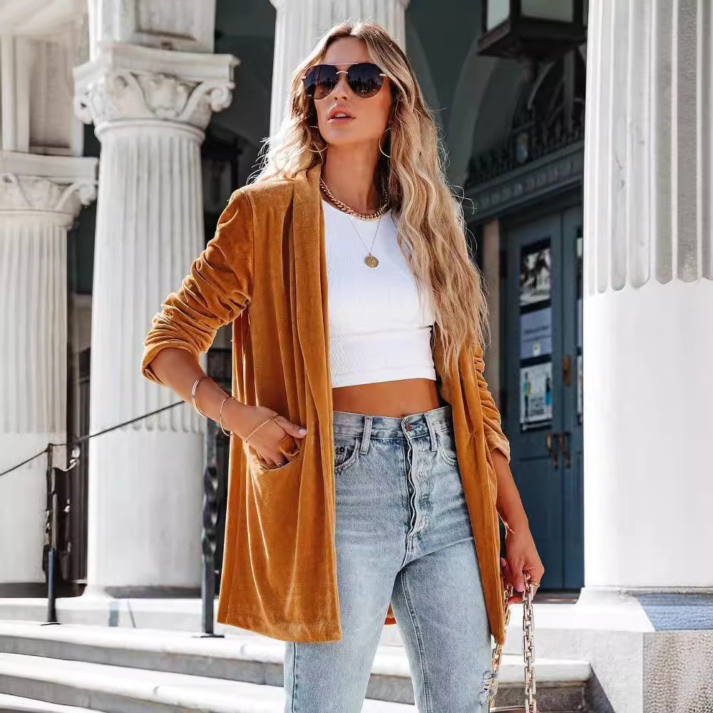 | nameOriginal | 2024 Europe and America Amazon New Cross-border Women's Overseas Hot Loose Gold Velvet Stretch Pocket Long Sleeve Jacket |