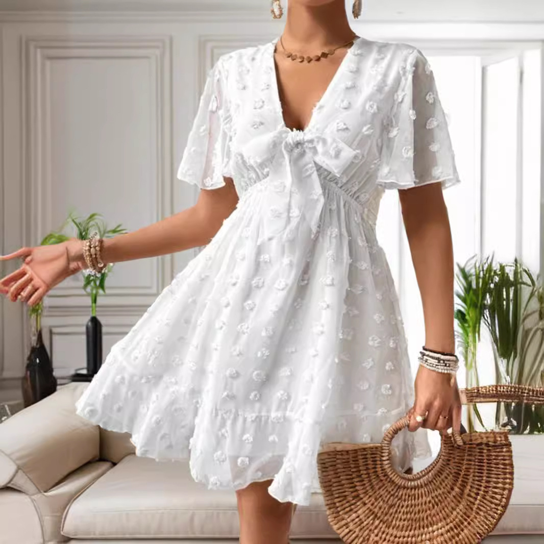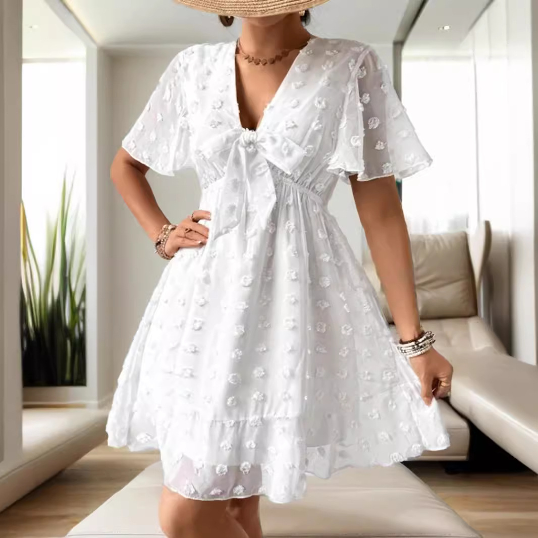 | nameOriginal | 2024 Europe and the United States cross-border foreign trade women's AliExpress Amazon summer chiffon V-neck bow short sleeve dress |
