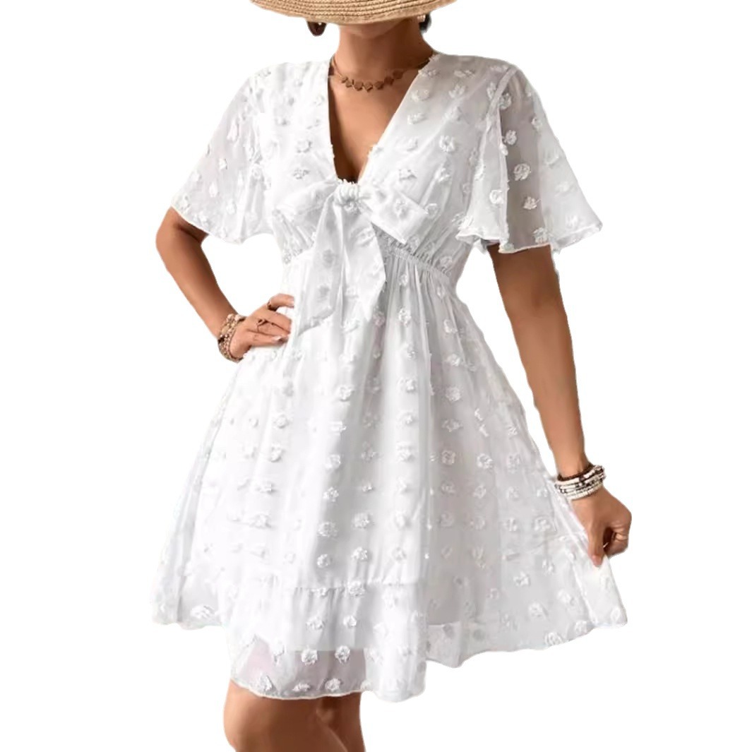| nameOriginal | 2024 Europe and the United States cross-border foreign trade women's AliExpress Amazon summer chiffon V-neck bow short sleeve dress |