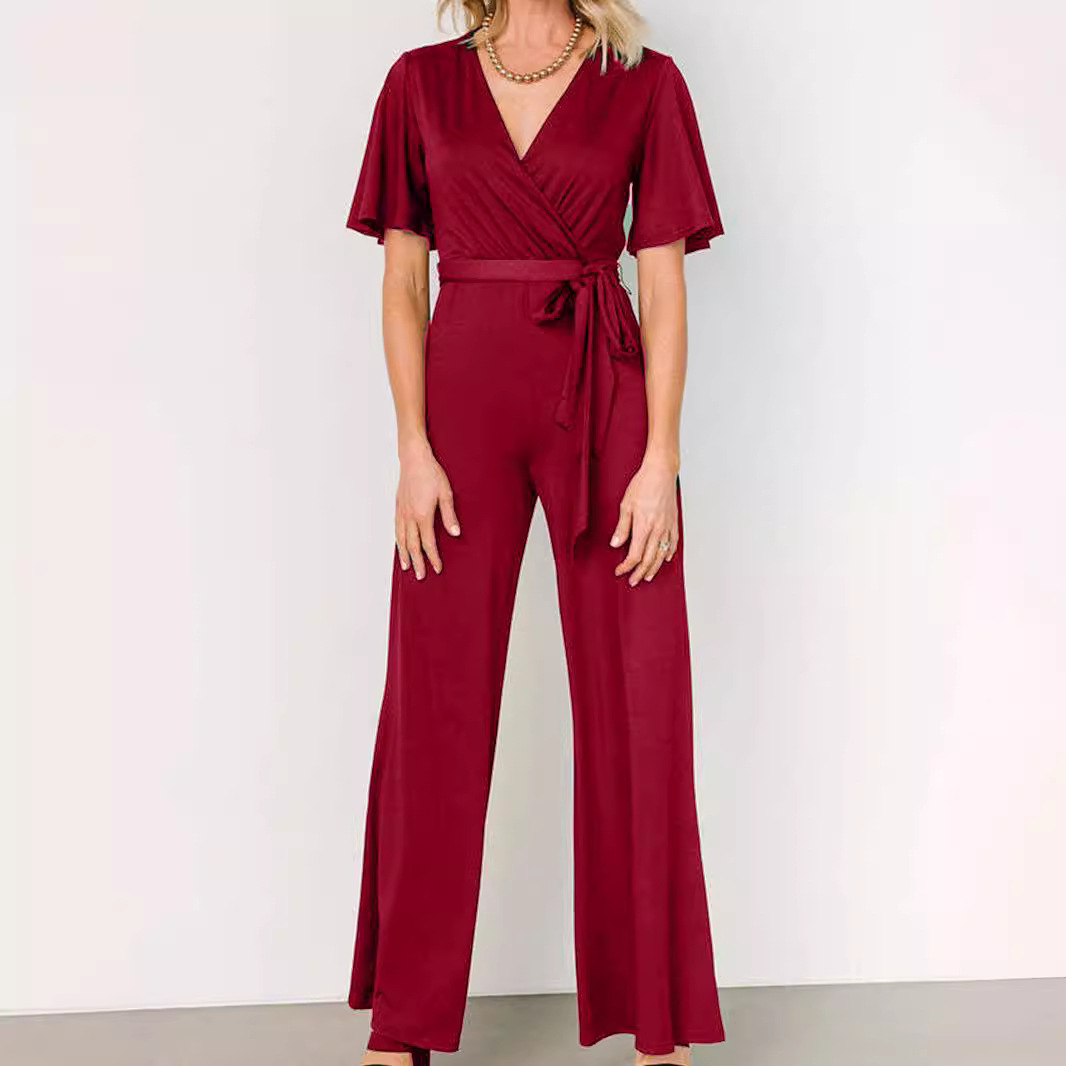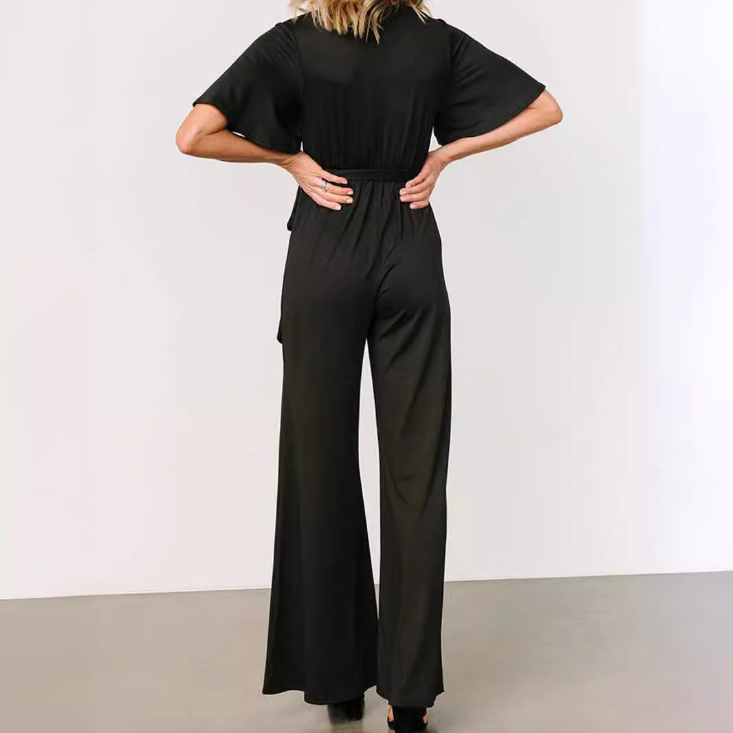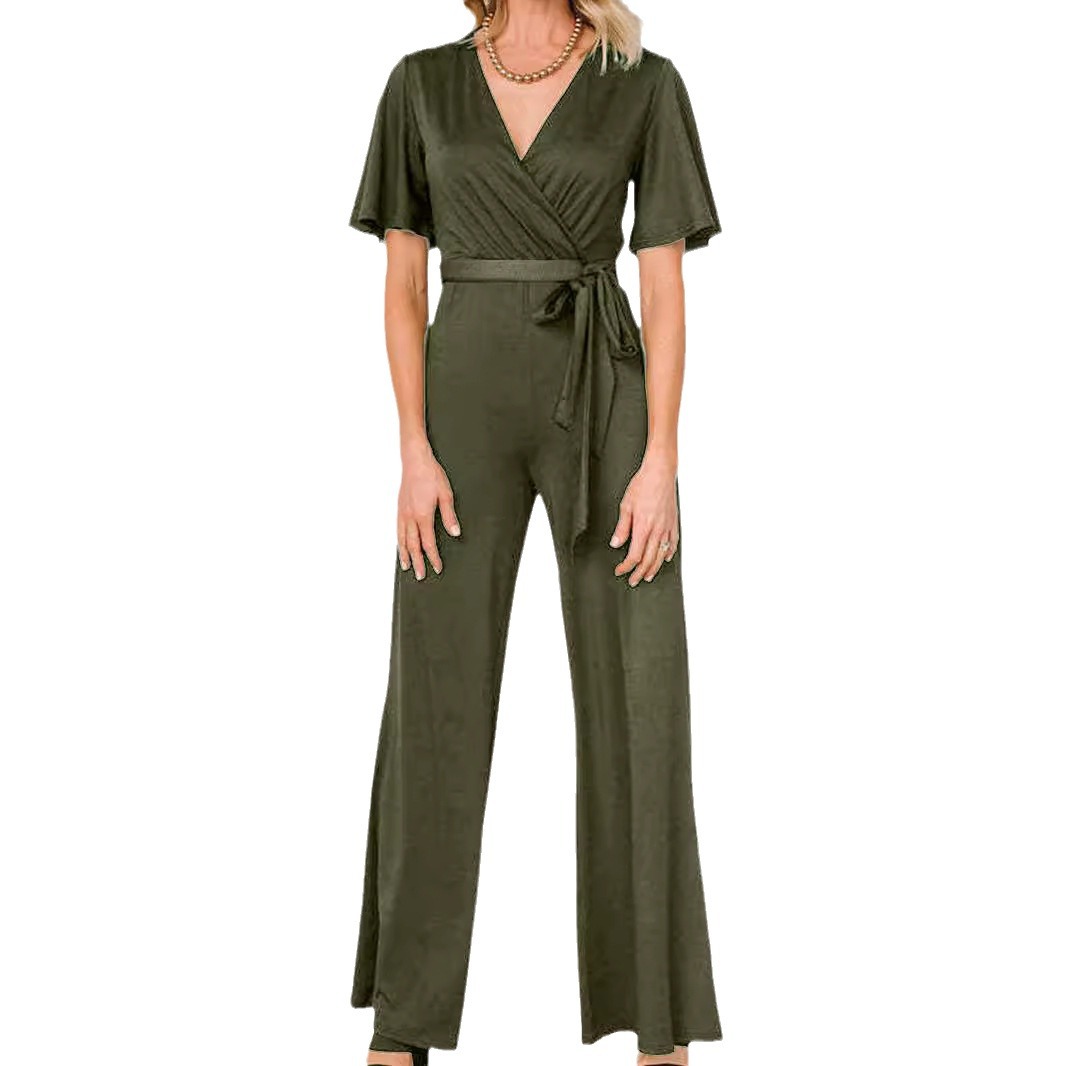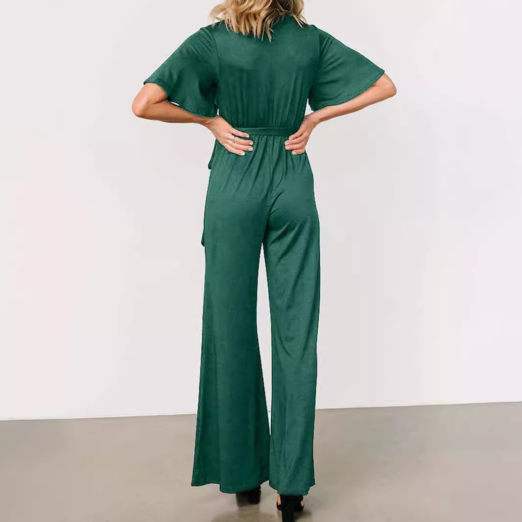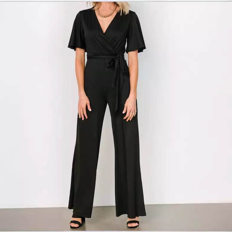 | nameOriginal | 2024 Europe and the United States cross-border women's AliExpress Amazon new casual fashion solid color short sleeve belt jumpsuit |