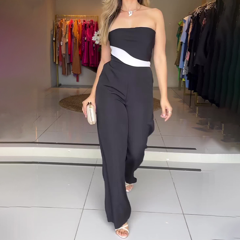 | nameOriginal | 2024 Europe and the United States foreign trade Amazon AliExpress summer off-shoulder tube top color contrast design straight fashion jumpsuit |