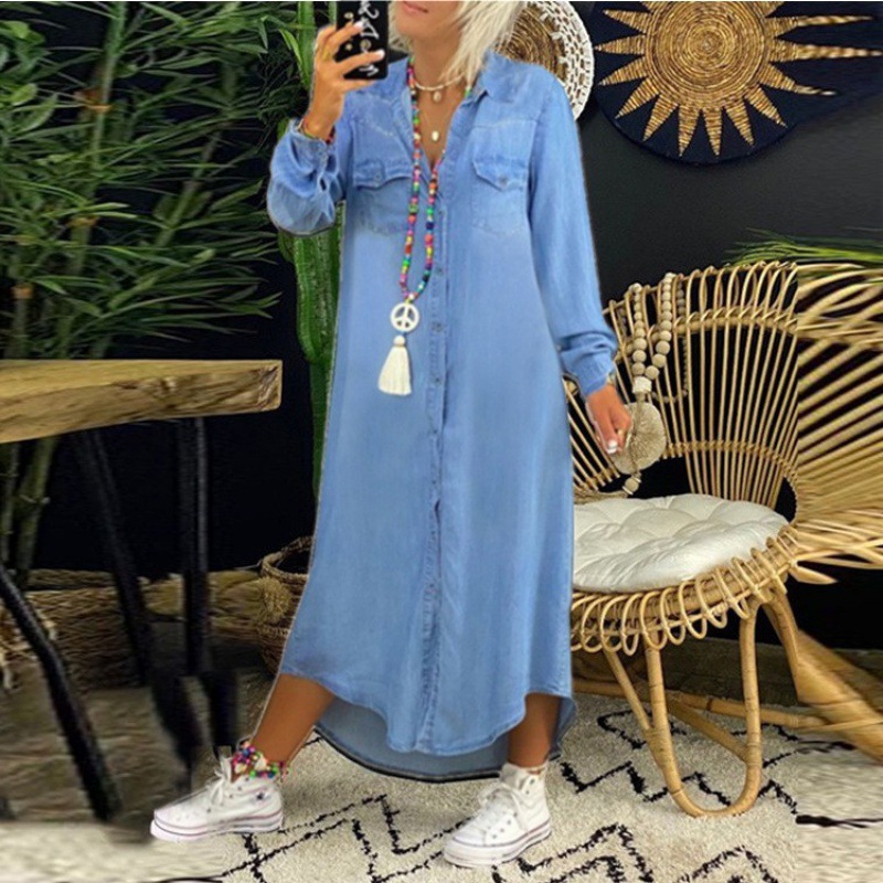 | nameOriginal | 2024 European and American AliExpress Explosions Denim Long Dress New Solid Color Square Collar Denim Casual Long Dress |