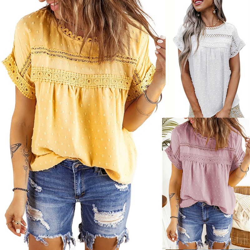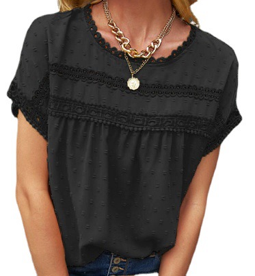 | nameOriginal | 2024 European and American Amazon Summer New Round Neck Pullover Short Sleeve Lace Top Women |