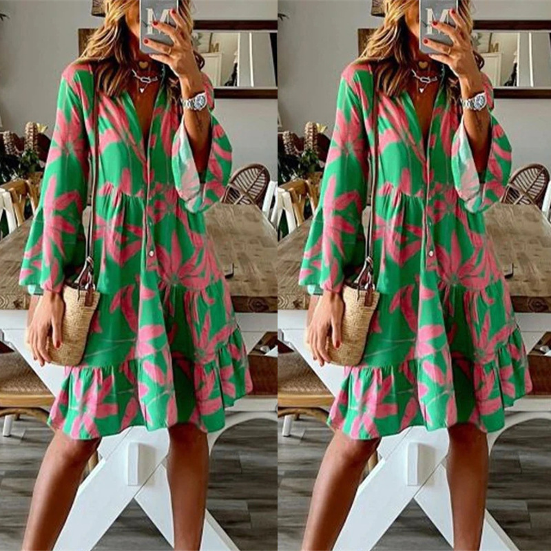 | nameOriginal | 2024 European and American autumn and winter Amazon new women's dress long sleeve printed bell sleeve Women's Mid-length dress |