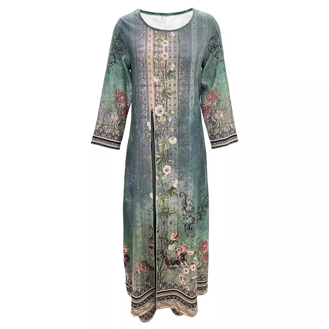 2024 European and American Cross-border Women’s dress Emerald Long High Open Round Neck Long Sleeve dress Solid Color Pants Set