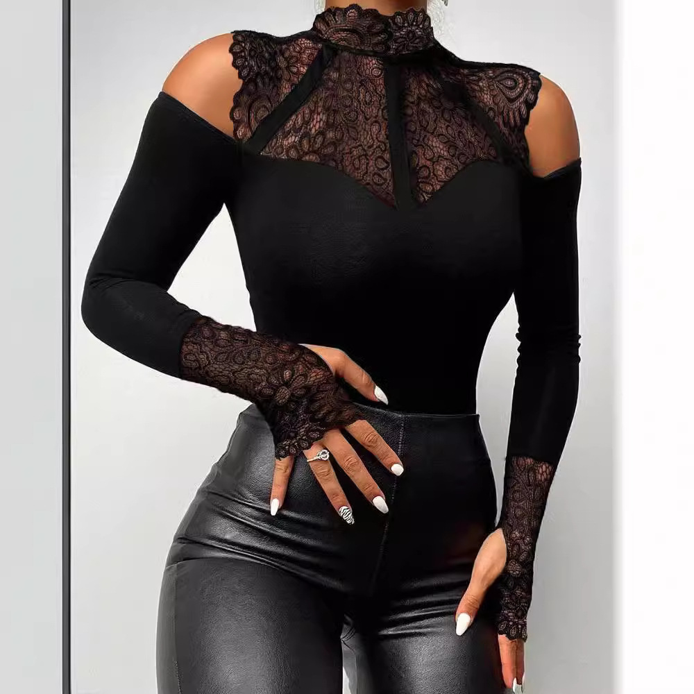| nameOriginal | 2024 European and American Fashion Cross-border Long Sleeve Lace Tight Shoulder One-piece Top |