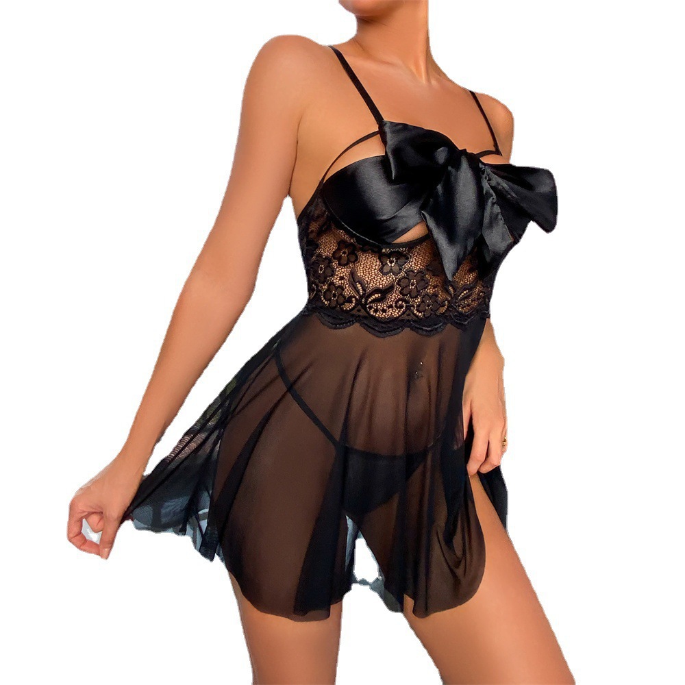 2024 European and American New Sexy Underwear Women’s Lace Sexy Siamese Pajamas Backless Sexy Perspective Pajamas
