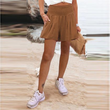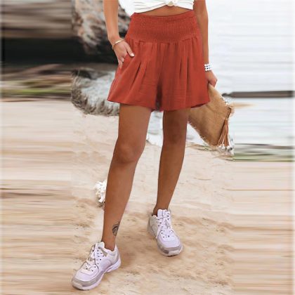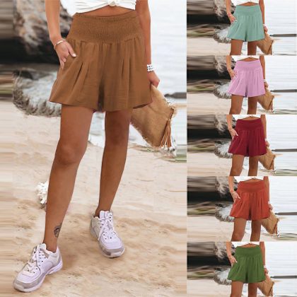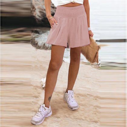 2024 European and American women’s independent station Amazon hot sale solid color high waist stretch shorts elastic waist wide leg casual pants