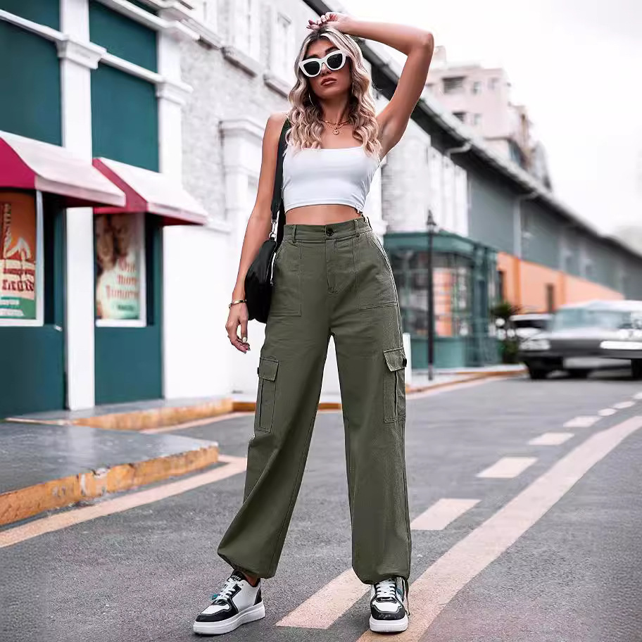 | nameOriginal | 2024 European and American Women's Street Fashion Multi-Pocket Workwear Straight Pants High Waist Slimming Loose Wide Leg Overalls |