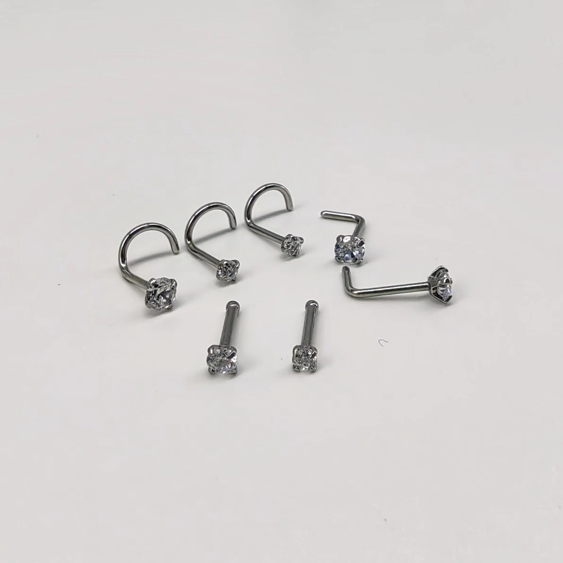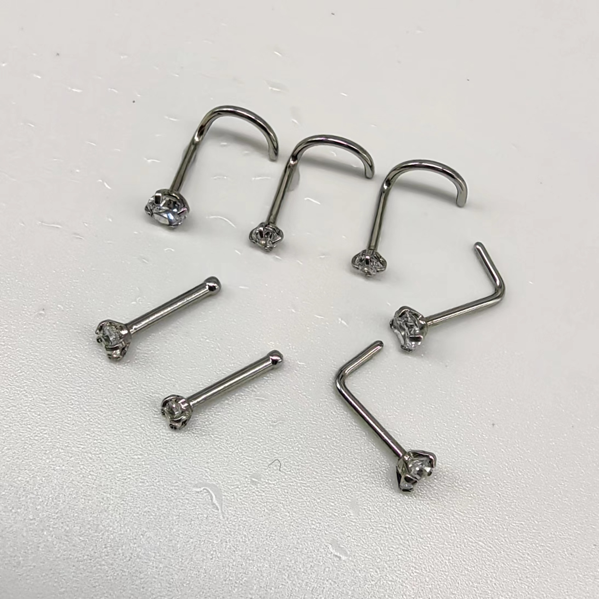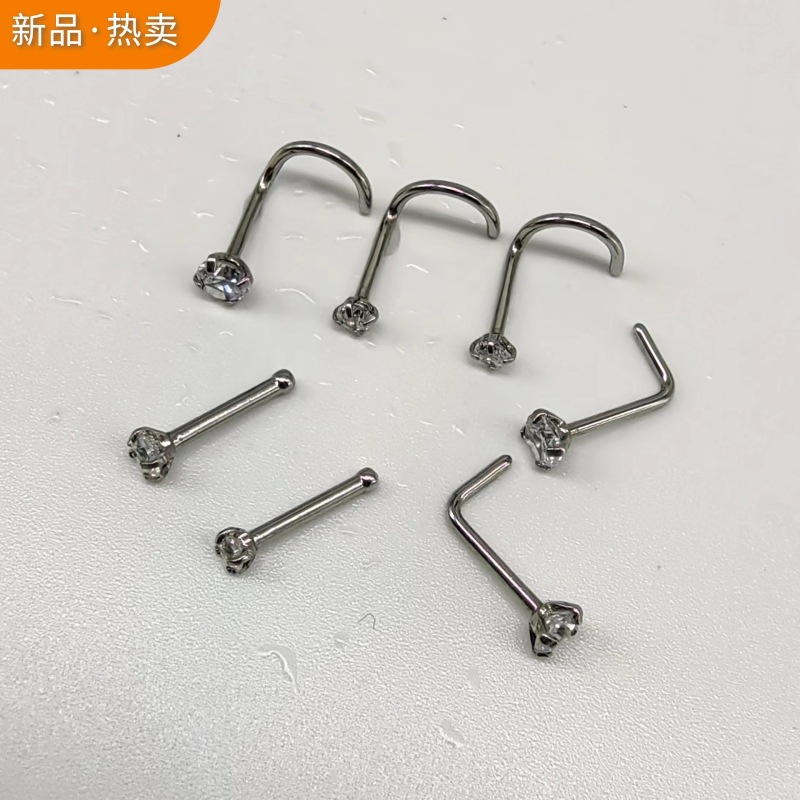 | nameOriginal | 2024 European and American zircon plated 7-shaped nose nail 5-shaped lip nail human body piercing jewelry stainless steel nose ring |