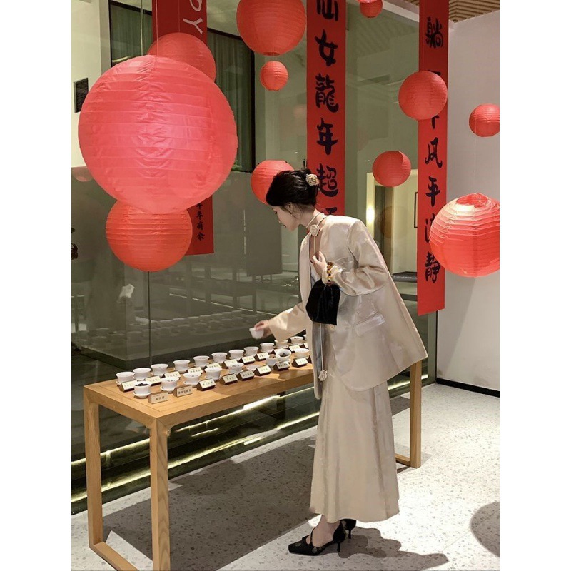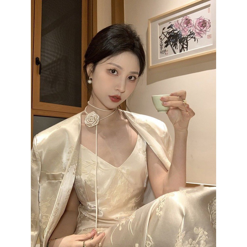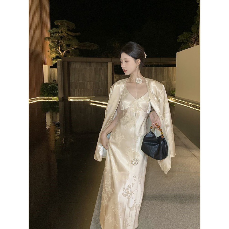 2024 Explosions Women’s New Chinese Jacquard Satin Suit suit Women’s High-grade Temperament Sling dress Two-piece Set