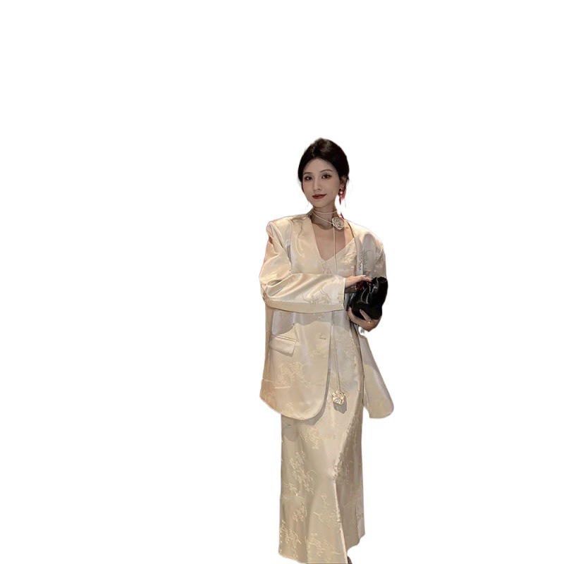 2024 Explosions Women's New Chinese Jacquard Satin Suit suit Women's High-grade Temperament Sling dress Two-piece Set