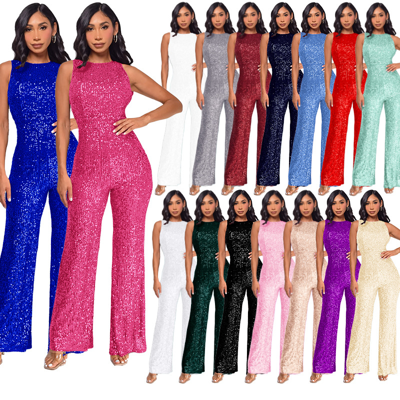 | nameOriginal | 2024 fashion cross-border Women's sleeveless round neck slim jumpsuit ebay temperament high waist sequined jumpsuit wholesale |