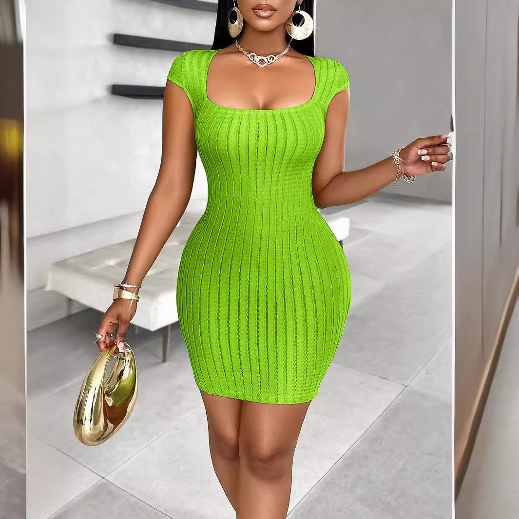 | nameOriginal | 2024 Fashion Sexy Cross-border Women's Independent Station wish Summer European and American Solid Color Square Collar Slim Fit dress |