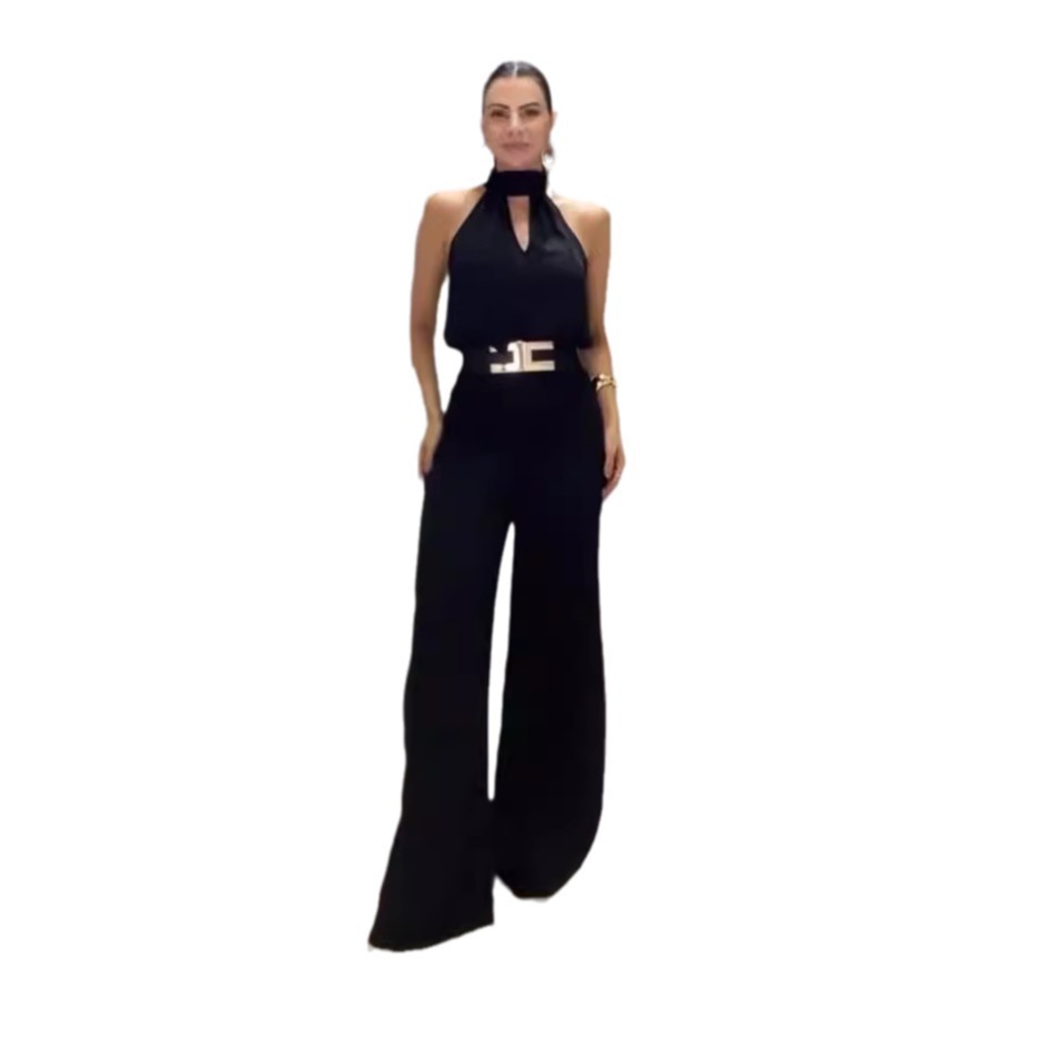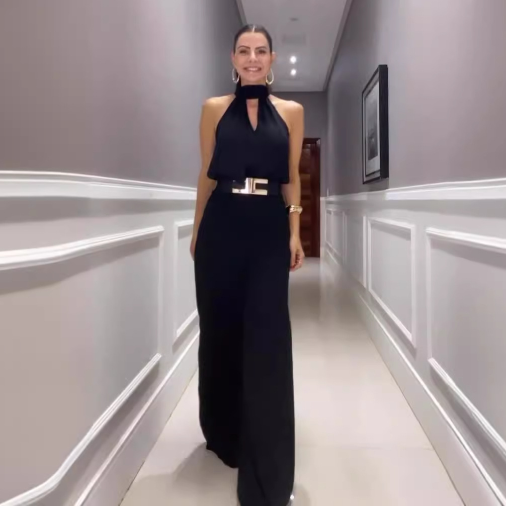 2024 Foreign Trade Cross-border Europe and America Amazon Summer New Fashion Round Neck Belted Solid Color Wide Leg Pants for Women