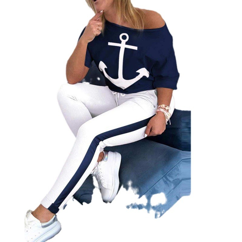 2024 foreign trade explosions Amazon AliExpress printing anchor sleeve round neck leisure sports suit