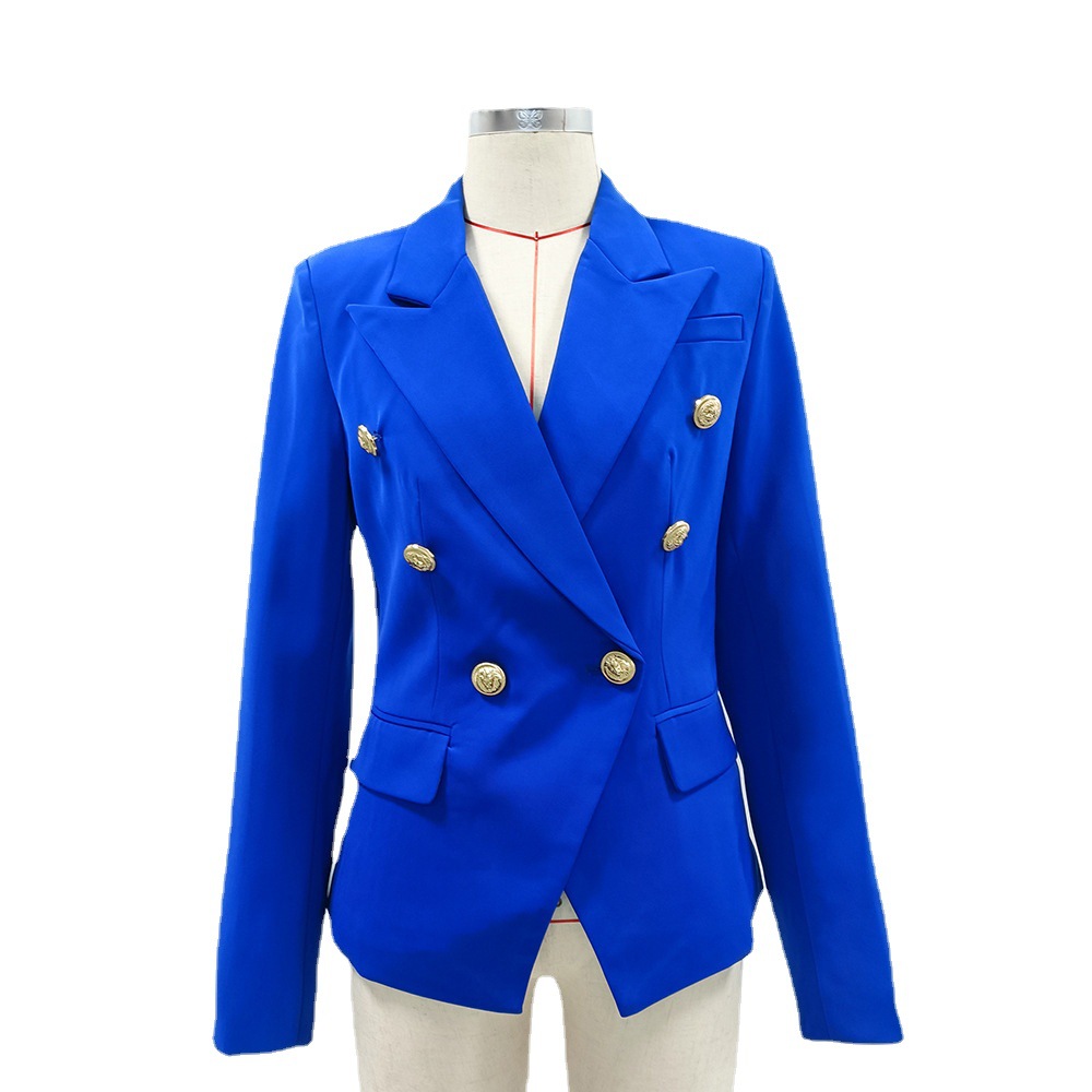 | nameOriginal | 2024 foreign trade star European and American catwalk metal lion head buckle double-breasted slim fit small suit short coat sapphire blue |